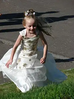 Children's clothing in the English-speaking world has become increasingly segregated, with young girls especially being expected to wear pink. Peggy Orenstein writes in her book, Cinderella Ate My Daughter, that pink-coloured and princess-themed clothes are almost ubiquitous for young girls in shops in the United States. She sees this as problematic because it limits girls to not only one colour, but also to one spectrum of experience, and it "firmly fuses girls' identity to appearance."[8] In reaction to this situation, a campaign group Pinkstinks was formed in the UK in 2008[9] to raise awareness of the gender stereotyping of children.[10] Further, clothing companies have started to sell clothes that are unisex or gender-neutral, such as the Swedish company Polarn O. Pyret,[11] while others have been founded specifically to offer such items, such as Tootsa MacGinty.[12][13]