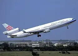 On February 8, 1990, China Airlines received the first of its initial five Boeing 747-400s (B-161). 1993 saw the airline listed on the Taiwan Stock Exchange. The new 747-400s and an earlier order with Airbus for over a dozen A300B4 and A300-600Rs wide body regional jets allowed for addition destination growth. During the 1990s, China Airlines also bought the McDonnell Douglas MD-11 and had to compete with a new competitor, EVA Air. They also founded another airline to deal with the PRC-ROC dispute which borrowed aircraft from China Airlines itself.[9] One of China Airlines's 747-400s (B-164) was also used by President Lee Tung-hui during his trip to the United States in June 1995.[10]
