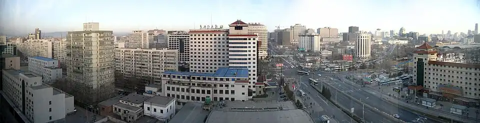 ᡩᡠᡴᠠ; Möllendorff: šu be wesihulere duka) was a gate that was part of Beijing's city wall in what is now Dongcheng District. The gate stood in the southeastern part of Beijing's inner city, immediately south of the old Beijing Legation Quarter. In the 1960s, the gate and much of the wall was torn down to make room for Beijing's second ring road. Today, Chongwenmen is marked by the intersection of Chongwenmen Nei (Inner) and Chongwenmen Wai (Outer) Street, which run north–south through the former gate, Chongwenmen East and Chongwenmen West Street, which run east–west where the wall stood, and Beijing Station West Street, a diagonal street, going northwest to the Beijing railway station. Chongwenmen is a transport node in Beijing. Chongwenmen Station is an interchange station on Lines 2 and 5 of the Beijing Subway. Chongwen District, an administrative division of the city from 1952 to 2010 and now folded into Dongcheng District, was named after Chongwenmen.