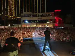 Young has supported Little Kids Rock by donating various items to the organization for auction, raising money to put instruments in the hands of children.[26] He has been a major supporter for Stars For Stripes raising $35,000 for the organization.[27] He supports St. Jude Children's Hospital,[28] and has raised money for it by sponsoring a tree at the Gaylord Opryland Resort's Annual Hall of Trees.[29] On September 8, 2014, Young donated $25,000 of his own money, along with $5,000 from his fan club, to the Nashville School of Arts.[30] In late August 2017 he created a fundraising site for Houston to help with the massive flooding caused by Hurricane Harvey.[31]