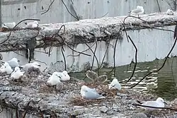 The site was not ideal for the nesting gulls, as Department of Conservation (DOC) staff had identified issues with newly hatched chicks drowning in the polluted water and sludge at the bottom of the pit. The water became polluted with droppings and chick carcasses.[8] In the wild, the gulls nest on stoney islands and banks in the braided rivers of the Canterbury Plains. As part of efforts to relocate them, Christchurch City Council landscaped parts of the Residential Red Zone in Bexley to create more inviting habitats for them to move to.[10]