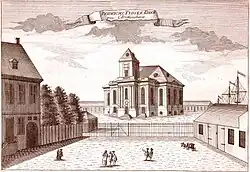 After Christian IV founded Christianshavn in 1617 as a town specially for merchants, a large community of German traders and craftsmen settled there. Although Christianshavn had been incorporated into Copenhagen prior to 1674, they did not attend St. Peter's Church like the rest of the city's German community but preferred to worship at the local Church of Our Saviour. This lasted until they finally asked King Christian VI for permission to build their own church. The King approved the plans and contributed with a lot, a former saltern, located at the end of Strandgade in the southern part of the neighbourhood. He also granted permission for a lottery to be held to cover the project's financing; the finished church used to be colloquially known as the Lottery Church.[1]