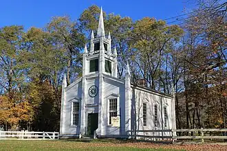 Christian Church, also known as Fitches Bridge Church, is a historic church on NY 10 at East Delhi in Delaware County, New York. It was built in 1861 and is in the Greek Revival style with an overlay of Gothic Revival decoration. It is a small rectangular structure of post and beam construction. It features 12 narrow, engaged towers with pinnacles that mark the corners of the building.[2]