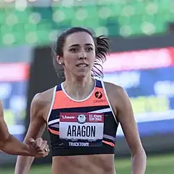 Christina Aragon (born 17 June 1997) is an American middle-distance runner who specializes in the 1500 metres. She competed collegiately for Stanford University (2016–2022) and since 2022, has been a part of the Bowerman Track Club.[1] She won a bronze medal in the 1500 m at the 2016 World U20 Championships.