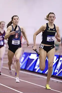 Aragon (left) in the DMR the 2018 NCAA Indoor Track and Field Championships