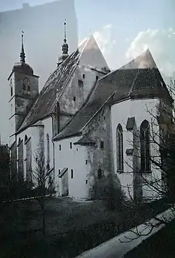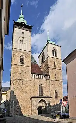 The Church of St. James the Great (Czech: Kostel svatého Jakuba Staršího) is an early Gothic church in Jihlava in the Czech Republic. It is a three-aisled temple nave with a long presbytery and two high towers in the front. It is consecrated to the patron of miners Saint James the Great.