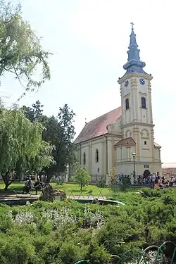 The Church of St. Nicholas (Serbian Cyrillic: Храм светог Николе) in Šid is Serbian Orthodox church in Vojvodina, Serbia. The church is dedicated to Saint Nicholas. It is the primary centrally located Eastern Orthodox church in the town and a protected cultural monument. The building was constructed in the second half of the 18th century and completed in 1780.[3][4][2] At the time, modern day Vojvodina was a part of the Habsburg monarchy in which Šid was located close to the Ottoman Serbia. At the time of the construction of the Eastern Orthodox church in Šid, Habsburg Monarchy (nominally protector of the Roman Catholic church ever since the time of Counter-Reformation) implemented numerous legal reforms such as Declaratory Rescript of the Illyrian Nation and Patent of Toleration which improved legal standing of the Eastern Orthodox subjects.