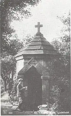 St Chad's Well is located in the churchyard to the north-west of the church. It was built over what was a sacred spring, where St Chad is reputed to have prayed on a stone at the spring, baptised his converts and healed peoples' ailments. It had become a popular place of pilgrimage by the 16th century.