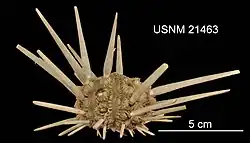 2. ^ Clark, H.L. (1907). "The Cidaridae". Bulletin of the Museum of Comparative Zoology. 51 (7): 210–211, pl. 4: fig. 1, pl. 5: fig. 1, pl. 7: figs 5-8.