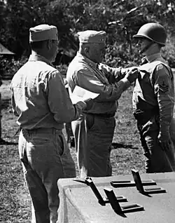 General Vogel decorates Navy Corpsman Delbert E. Eilers with Silver Star for his bravery during the Solomon Islands Campaign, New Caledonia, summer 1943.