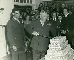 Vogel cuts a piece of cake at the Marine Corps birthday celebration in San Diego, 1943.