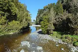 The Clearwater River (Māori: Kairaumati) is on the West Coast of the South Island of New Zealand. The river originates on the northern slopes of Mount Mitchell on the western end of the Victoria Range, only one valley north of the Fox Glacier and Fox River.[1] Clearwater River and its tributary creeks drain land to the north of the Cook River / Weheka. The river flows under a bridge of SH 6 just north of the Fox Glacier township and passes close to Lake Matheson shortly after before flowing into Cook River / Weheka, which drains into the Tasman Sea.