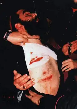 The blind-seer, Clemente Domínguez y Gómez (later Pope Gregory XVII), during a mystical ecstasy, showing visible wounds of the stigmata from the Crown of Thorns and Spear of Longinus.