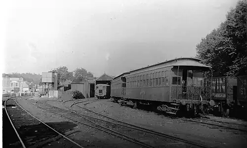 ![]() The station and carriage shed in the 1930s | |||||