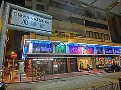 Cleveland Street (Chinese: 加寧街) is a one-way southbound road in Causeway Bay, Wan Chai District, Hong Kong Island. It starts from the junction of Victoria Park Road and Gloucester Road in the north, passes through Newtown Mansion and Cleveland Mansion, and ends at Kingston Street near Paterson Street in the south.