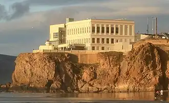 The Cliff House is a neo-classical style building perched on the headland above the cliffs just north of Ocean Beach. Located on the West Side of San Francisco in the city's Outer Richmond neighborhood, the building overlooks the site of the Sutro Baths ruins, Seal Rocks, and is part of the Golden Gate National Recreation Area and operated by the National Park Service (NPS). The Cliff House is owned by the NPS; the building's terrace hosts a room-sized camera obscura.