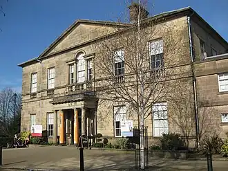 Clifton House was designed by John Carr of York for Joshua Walker, an industrialist involved in the manufacture of iron and steel, and completed in 1784.[2] The grounds of the house now comprising the park originally had walled gardens, pleasure grounds, and a fishpond, however they have mostly been lost due to later park changes.[3] The house and park were purchased by the Municipal Borough of Rotherham in 1891 and the museum was first opened to the public later that year with the majority of its exhibits loaned by local people.[2] It was administered by the Borough Librarian with a succession of honorary curators until the 1970s. In 1974 the soot blackened stonework was cleaned and the museum building was extended when a roof was placed over the original open courtyard.[4]