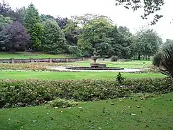 The park in which the museum sits is Grade II listed with Historic England[8] so too are the gate piers at one of the entrances.[9] Clifton Park was opened on 25 June 1891 by the Prince of Wales, later Edward VII. Between 1891 and 1893 changes were made to the grounds to add footpaths, entrances and facilities resulting in the original walled kitchen garden being demolished. In the 1830s a commemorative beech tree was planted for Queen Victoria's coronation. In 1900 the main entrance was added, the Cenotaph was added in 1922, and the Memorial Gardens in 1948. The park was given a Heritage Lottery Fund award with a value of £7.6m and between 2009 and 2011 new features such as the water play area was added.[3] A new walled garden was built and has plots maintained by a variety of different groups. The memorial garden has floral displays and a central fountain which is engraved with the names of Rotherham's Victoria Cross holders. The rock garden includes a waterfall and ponds. A new garden house and courtyard was built and offers event spaces and toilets. The house garden has Japanese maples, bamboos and a yellow weigelia. [10]