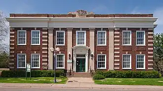 The Cloquet City Hall, also known as the Spafford Building, is located at Avenue B and Arch Street in Cloquet in the U.S. state of Minnesota. The red brick Colonial Revival building was built in 1920 and features quoins, keystones, and an entablature with a high parapet. Tall stone pilasters extend to the high cornice.[2]