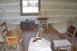 The slave quarters contributes to the Tavern and the Clover Hill village scene as it was at the time of the surrender of General Lee to General Grant in 1865. The present structure is a reconstruction of the 1819 slave quarters that was rebuilt in 1954.[4]