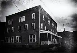 The practice by patrons of tacking spare banknotes onto the ceiling of the public bar at the historic Coalmont Hotel continued into the 2000s.[108] The hotel celebrated its 100th anniversary in 2012. A stove chimney pipe fire in 2014 caused limited damage.[109] In 2003, the Sternes converted the former CP pay office into a home and three-unit motel called the Mozey-On-Inn. The units were designated as the Bank, Saloon and Barbershop.[110]