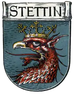 1898 depiction of the coat of arms of Szczecin by Otto Hupp.[2]
