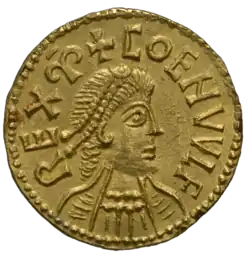 A gold coin bearing the name Coenwulf was discovered in 2001 at Biggleswade in Bedfordshire, England, on a footpath beside the River Ivel. The 4.33 g (0.153 oz) mancus, worth about 30 silver pennies, is only the eighth-known Anglo-Saxon gold coin dating to the mid-to-late Anglo-Saxon period. The coin's inscription, "DE VICO LVNDONIAE", indicates that it was minted in London.[59] It has seen little or no circulation, as it was probably lost shortly after it was issued. The similarity to a coin of Charlemagne inscribed vico Duristat has been taken to suggest that the two coins reflect a rivalry between the two kings, although it is unknown which coin has priority.[60] Initially sold to American collector Allan Davisson for £230,000 at an auction held by Spink auction house in 2004, the British Government subsequently put in place an export ban in the hope of saving it for the British public.[61][62] In February 2006 the coin was bought by the British Museum for £357,832 with the help of funding from the National Heritage Memorial Fund and The British Museum Friends[63] making it the most expensive British coin purchased until then, though the price was exceeded the following July by the third-known example of a Double Leopard.[64]