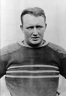 The perception of bias was even worse in the South than in the West,[12][13] and Camp's team eventually grew to accommodate Western football in a way it never did with the South. To illustrate an example of this, Chicago punter Clarence Herschberger in 1898 and Michigan back Willie Heston in 1903 made Camp's first team. By 1905, Camp said V. P. I.'s Hunter Carpenter was probably the best football player in the United States, but he hadn’t personally seen him and refused to name him to the All-American team because he wouldn’t pick any player that he hadn’t seen.[14][15] In 1906, Owsley Manier made Camp's third-team All-American. Buck Mayer, in 1915, was the South's first consensus All-American.[16] In 1917, the same year as the South's first national champion team, John Heisman's Georgia Tech, Tech players Walker Carpenter and Everett Strupper were the first two from the Deep South selected first-team All-American.[17] The next year Bum Day was the first player on a Southern team selected for Camp's first team. Only six southern players ever made Camp's first team before his death in 1925, Day along with: Bo McMillin of Centre, Red Weaver of Centre; Bill Fincher of Georgia Tech; Red Roberts of Centre; and Lynn Bomar of Vanderbilt.[18] Therefore for many years the All-Southern team was how the south recognized its best. Fuzzy Woodruff commenting on the 1921 composite selection of the Atlanta Constitution and Atlanta Journal states "This composite pick has now been recognized as the south's official football hall of fame. No southern player can receive a higher honor unless he happens to be named on Walter Camp's All-American."[19] By 1933 as above the modern Southeastern Conference was established, and All-SEC teams took prominence in the south; but also the south's recognition on All-America teams had increased, for the 1932 College Football All-America Team featured three southern consensus All-Americans: Pete Gracey of Vanderbilt, Jimmy Hitchcock of Auburn, and Don Zimmerman of Tulane.