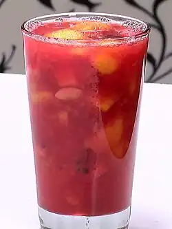 • Salpicón (which literally means large splash) is made from diced fruit and soda, usually Colombiana or any Kola flavoured soda. It can also be a fruit cocktail beverage (often made with watermelon or mandarin juice).[23] The traditional fruit one consists of mixing banana, pineapple, papaya, watermelon, etc.