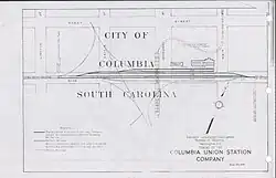 The Columbia Union Station Company was chartered by the South Carolina General Assembly in 1900 to acquire, construct, maintain and operate or lease to others companies railroad terminal facilities for rail passenger accommodation, mail transfer and maintenance of restaurants, news stands, and telegraph and telephone offices.[1]