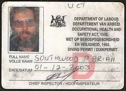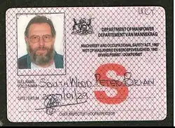 Class 4 Diving Supervisor registration card: SA Department of Labour 2007