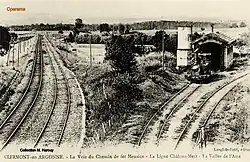 During World War I, there was a 600 mm (1 ft 11+5⁄8 in) gauge constructor's or trench railway between Clermont-en-Argonne and Auzéville in operation using German locomotives. | |