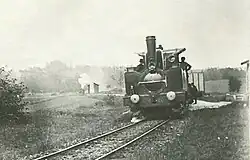 During the World War I, the locomotive fleet of the Compagnie Meusienne de Chemins de Fer (CM) was strengthened by requisitioning locomotives from metre gauge lines in other parts of France, so that up to 128 locomotives were used on the line. One of these was No. 55 (Corpet Louvet 1253/1909) from the Chemins de Fer Économiques des Charentes (EC). By the end of 1915, operational improvements made it possible to handle a very large amount of freight, which had increased from 800 to 1500 tons per day in addition to carrying 80 passengers per day. In the first five months of 1916, traffic increased to 137,367 soldiers, 84,888 wounded, 201,257 tons of supplies and 69,847 tons of ammunition and weapons transport.[5]