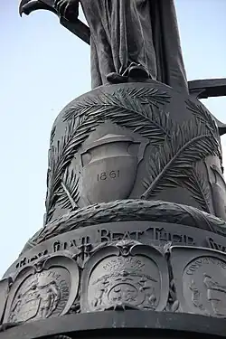 As casting on the memorial neared completion in November 1913, the ACMA announced that it had raised $50,443 ($1,604,803 in 2024 dollars), of which $3,517 ($111,893 in 2024 dollars) went to construction of the concrete foundation, fund-raising, and expenses associated with the cornerstone-laying ceremony.[102] Just over $12,700 ($404,048 in 2024 dollars) had been raised in 1913 alone.[103] As of November 1914, a total of $56,262 ($1,766,178 in 2024 dollars) had been raised for the memorial.[104]