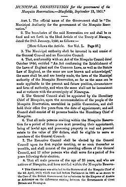 | Municipal Constitution for the Government of the Mosquito Reservation | |