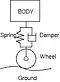 A vehicle contacts the ground through the spring and damper in a normal spring damper suspension, as in Figure 1. To achieve the same level of stability as the Skyhook theory, the vehicle must contact the ground through the spring, and the imaginary line with the damper, as in Figure 2. Theoretically, in a case where the damping coefficient reaches an infinite value, the vehicle will be in a state where it is completely fixed to the imaginary line, thus the vehicle will not shake.