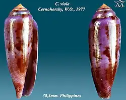 | Apertural and abapertural views of shell of Conus viola Cernohorsky, W.O., 1977 | |