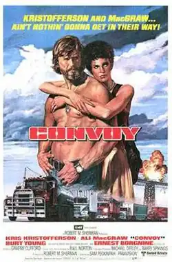 Convoy is a 1978 American road action film directed by Sam Peckinpah and starring Kris Kristofferson, Ali MacGraw, Ernest Borgnine, Burt Young, Madge Sinclair and Franklyn Ajaye. The film is based on the 1975 country and western novelty song "Convoy" by C. W. McCall. The film was made when the CB radio/trucking craze was at its peak in the United States, and followed the similarly themed films Moonfire (1970), Duel (1971), Deadhead Miles (1973), Hijack (1973), White Line Fever (1975), Smokey and the Bandit (1977), La Menace (1977) and Breaker! Breaker! (1977).