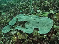 Roughly 1 km2 in size, Varadero boasts approximately 80% coral cover.[1] Reaching more than 3 meters in diameter, many of the massive colonies found in the reef of Varadero belong to the hermatypic coral genus Orbicella. This reef is estimated to contain over 30 scleractinian coral species.[1] To adjust to the low light levels resulting from the high turbidity, some corals have utilized a flattened, plate-like growth strategy to optimize light exposure for its photosynthetic algal endosymbionts of the genus Symbiodinium. With the rapid decline of coral reefs in the Caribbean, scientists are examining reefs such as Varader that are surviving in conditions previously thought to be inhospitable to corals to understand reef resilience. Furthermore, microbiome and physiological research of this reef indicate that Varadero is experiencing a slow decline and may be on the brink of dysbiosis.[5]