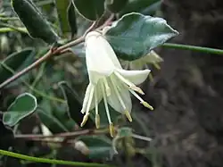 • Correa backhouseana Hook. var. backhouseana,[7] commonly known as coast correa in Victoria and as velvet correa in Tasmania,[2][8] has a cream-coloured corolla and egg-shaped to broadly egg-shaped or broadly elliptical leaves that are smooth on the upper surface;[9]