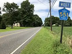 View south (signed as west) along CR 551 just southwest of CR 641 in Carneys Point Township