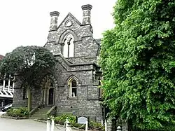 During the first eighteen months of its existence, the Court had three venues. The first was the Stone Chamber of the Canterbury Provincial Council Chambers (April–May 1971), where the Court's début production, The Prime of Miss Jean Brodie was staged.[6][7] Occasionally the Māori Land Court would require the use of the chamber, necessitating the set being struck and taken to the Durham Street Art Gallery; the furniture being moved back into the chamber and the process reversed for the next evening's performance. The Stone Chamber was one of the city's most magnificent structures, but it was impractical for a theatre company, as there was little room for an audience and a lack of toilets.[6]