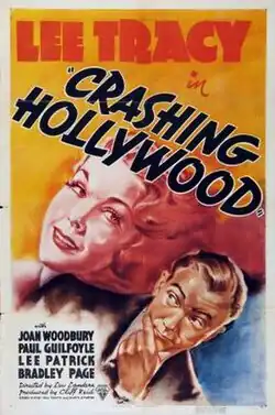 Crashing Hollywood is a 1938 American comedy film directed by Lew Landers and written by Paul Yawitz and Gladys Atwater. The film stars Lee Tracy, Joan Woodbury, Paul Guilfoyle, Lee Patrick and Bradley Page. The film was released on January 7, 1938, by RKO Pictures.[1][2] It is based on the 1922 play of the same title by Paul Dickey and Mann Page, previous adapted into the 1923 silent film Lights Out.[3]