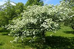 Crataegus meyeri is a species of hawthorn found in Belarus, European Russia including Crimea, Ukraine, Anatolia, the Transcaucasus, Iraq and Iran.[3] Trees, they are found in scrubby areas and forest openings on drier mountain slopes, typically in association with Quercus. A 2014 molecular and morphological study reduced Crataegus ucrainica and Crataegus × yosgatica to synonyms of Crataegus meyeri.[4]