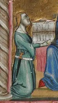 Self-portrait of Cristoforo Orimina. Detail of a miniature from the Anjou Bible, folio 311r