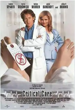 Critical Care is a 1997 American comedy film directed by Sidney Lumet. The film is a satire about American medicine.[1][2] The screenplay by Steven Schwartz is based on the novel of the same name by Richard Dooling and stars James Spader, Kyra Sedgwick, Anne Bancroft, Helen Mirren, Jeffrey Wright, and Albert Brooks. Rick Baker provided special makeup effects. The film is about a doctor who finds himself involved in a fight with two half sisters over the care of their ailing father.