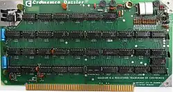 The Cromemco Dazzler was a graphics card for S-100 bus computers introduced in a Popular Electronics cover story in 1976.[1] It was the first color graphics card available for microcomputers.[2] The Dazzler was the first of a succession of increasingly capable graphics products from Cromemco which, by 1984, were in use at 80% of all television stations in the U.S. for the display of weather, news, and sports graphics.[3]