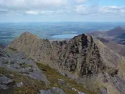 Cruach Mhór (Irish for "big stack"),[2] at 932 metres (3,058 ft) high, is the tenth-highest peak in Ireland on the Arderin list, and the eleventh-highest peak in Ireland according to the Vandeleur-Lynam list. A distinctive square grotto marks the summit. It is part of the MacGillycuddy's Reeks in County Kerry.