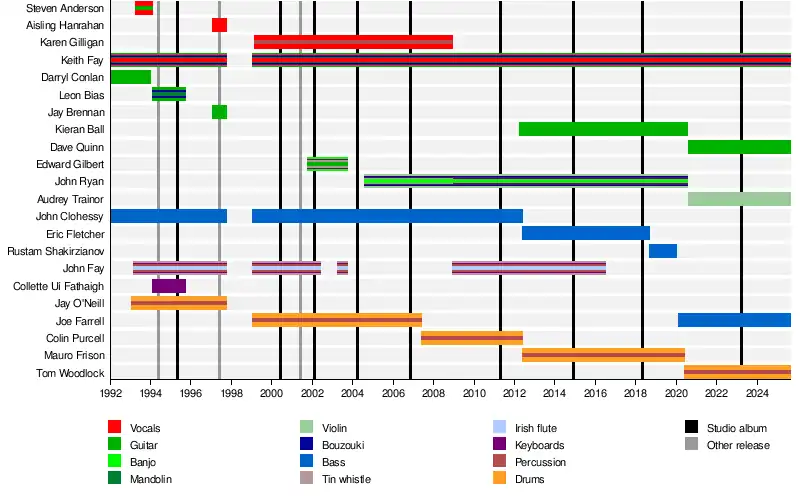 • John (O'Fathaigh) Fay – tin whistles, Irish flute, keyboards, percussion (1993–1997, 1999–2002, 2003, 2008–2016)
