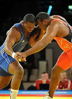 Mijaín López of Cuba, pictured on the left in 2009, won his fourth consecutive Pan American Games gold medal.